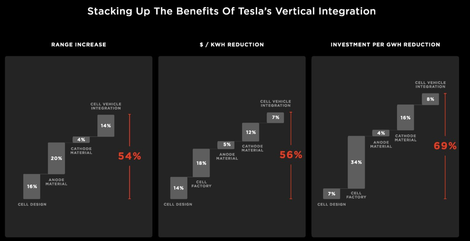 Altogether, this vertical integration was supposed to provide an additional 12% USD/kWh cost reduction at the pack-level.