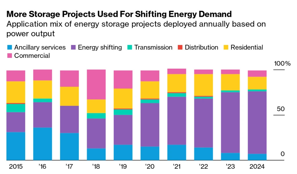 Over the past decade, energy shifting has become the dominant use case for stationary batteries, outpacing other applications (see Figure 2). In the early days, ancillary services like frequency regulation, spinning reserve, and voltage support were the main drivers of BESS deployment. While still important, these services are now overshadowed by bulk energy applications, which offer greater economic returns and a much larger addressable market.